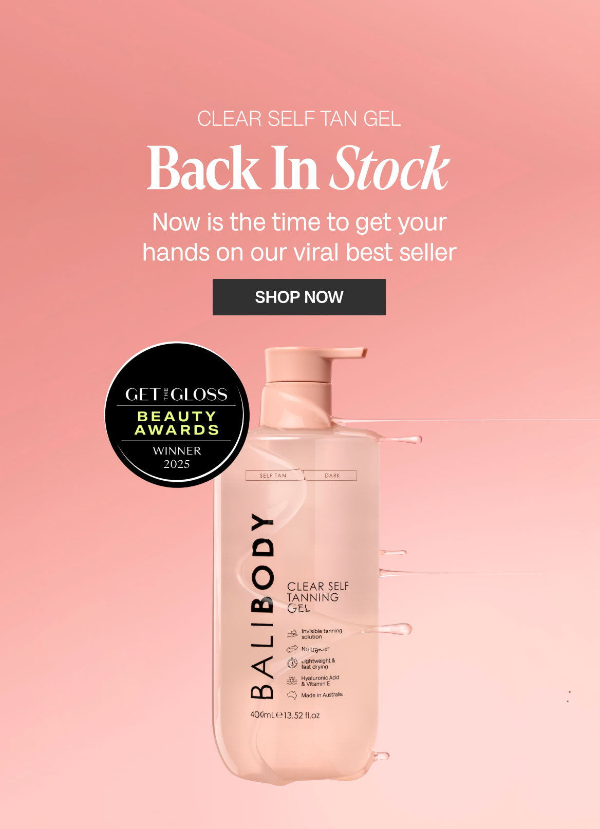 Your ultimate destination for bronzed skin perfection. Bali Body Self Tan, Skincare & Suncare was carefully formulated to deliver a healthy, sun-kissed glow.