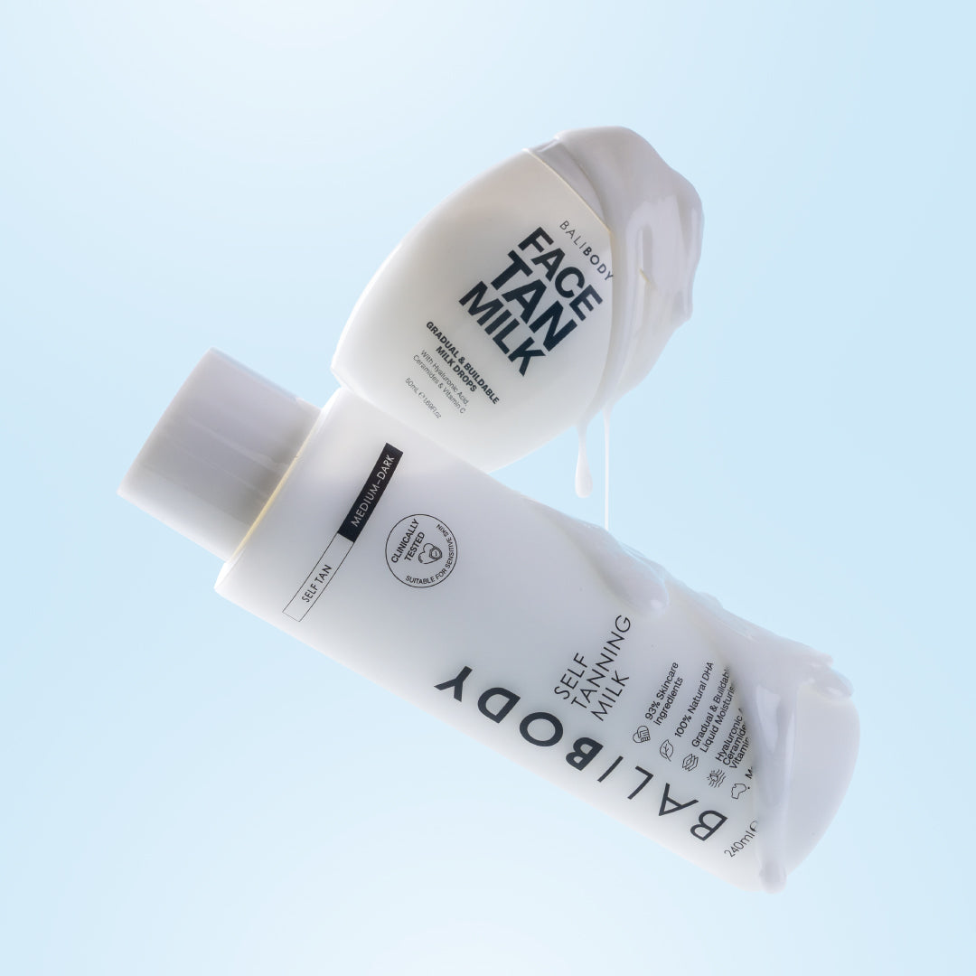 Purchase our NEW Face Tan Milk with our bestselling Self Tan Body Milk and save 10%. The ultimate duo for a gradual, glass-skin glow, delivering hydrated, glazed radiance from head to toe.